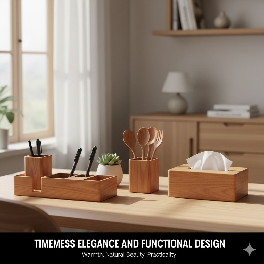 Each piece is created to bring warmth and natural beauty to your home or office. Our designs blend classic appeal with modern functionality, ensuring our wooden organizers and decor are not only visually appealing but also highly practical for everyday living.